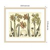 The image features a detailed botanical illustration of daffodils, showcasing various varieties with intricate line work and coloring. The flowers are accompanied by scrolls with Latin text. The style is reminiscent of vintage scientific illustrations, highlighting the elegance and diversity of the plants. This framed art print was created by Mark W. Langlois and printed by Amanti Art in Madison WI. The print is giclee printed using fade-resistant inks for picture-perfect detail and incredible depth of color and finished with a 100% real wood frame. Individually made using traditional custom framing techniques, it has the quality you would expect from your local frame shop.