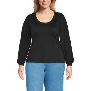 Lands' End Women's Plus Size Supima Interlock Scoop Neck Blouson Sleeve Top - 1x - Black