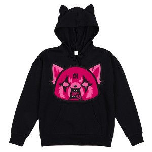 Aggretsuko Glitchy Pink Tonal Retsuko Face Women's Black Long Sleeve Cosplay Hoodie-Small
