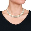 EVERLY JEWELRY | Yellow Plated Sterling Silver 6-8mm Cultured Freshwater Button Pearl Bead Double Row Necklace Bracelet and Stud Earrings 3-pcs Set