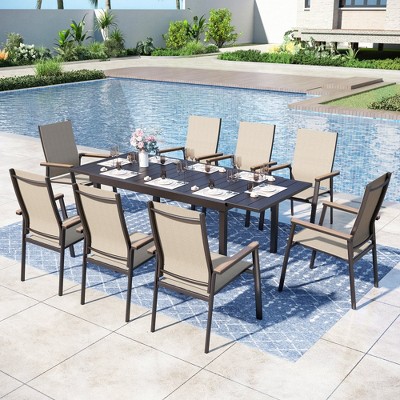 Captiva Designs 9pc Patio Dining Set with Slat-top Steel Rectangle Table & Textilene Aluminum Chairs