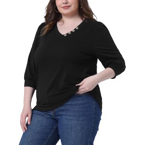 A plus-size brand inspired by the needs of its customers. It can match you to various occasions, with the proper tailoring to show your perfect curve, and the comfortable fabrics enable a pleasant experience. This plus-size blouse is designed with soft and stretchy fabric for the most comfy fit. This plus-size top has a regular fit, and the solid color top with decorative buttons is simple yet unique!