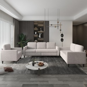 Mjkone Sectional Sofa Couches Set for Living Room 3-Seater Sofa&Loveseat$Single Sofa Chair-Beige