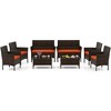 Costway 8 PCS Patio Furniture Set with Washable Cushions and Tempered Glass Coffee Table Orange