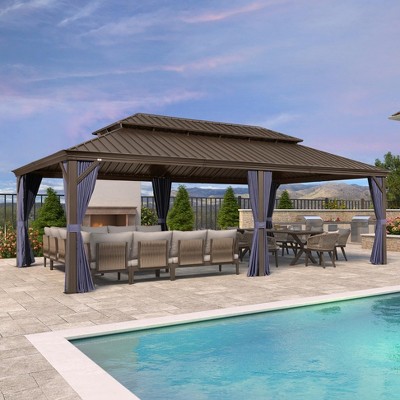PURPLE LEAF 12' X 14' Garden Bronze Double Roof Aluminum Frame Pavilion And Khaki Curtain Outdoor Hardtop Gazebo