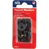20 flat faucet washers of assorted sizes, and 4 brass screws.
