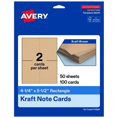 Easily create and print your own cards with Avery Kraft Brown 4" Diameter Round Cards. Infuse product instructions, table cards for weddings, thank you cards, and more with a touch of rustic charm, using Avery kraft brown cardstock. Created with heavyweight and durable 80 lb / 216 gsm kraft brown cardstock, the kraft brown material is a versatile fit for any project or event. Printable on both sides and compatible with laser and inkjet printers, the cards let you create professional designs with a desktop printer. Avery round cards are carefully constructed with useful features to provide the best results. Sure Feed technology reduces jams or smudges by creating a more reliable feed through your printer.