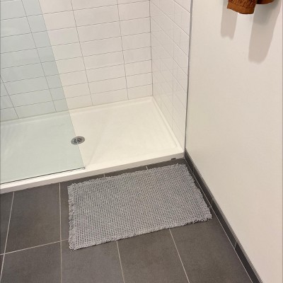 The carpets design absorbs water and dries quickly after showers