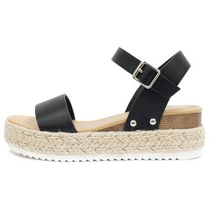 Soda CLIP Women's Open Toe Ankle Strap Platform Espadrille Sandal - Black PU - Size 10
