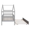 Introducing the Creativity House Bed, a delightful addition to your child's bedroom that combines fun and functionality. Featuring a charming house shape and a whimsical sky roof, this imaginative bed creates a playful environment your child will adore. With spacious storage options, the wood house platform bed includes a convenient trundle that easily rolls out for sleepovers and rolls back in when not in use, making it a perfect space-saving solution. Crafted from high-quality solid pine wood and MDF, this bed ensures solid construction and durability for years of enjoyment. Plus, it comes with two headboards for added comfort while sleeping. Transform your child's room with this enchanting and practical bed!