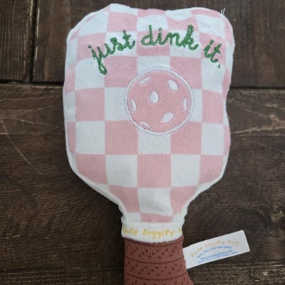 Haute Diggity Dog Pink Checker Pickleball Paddle Plush Dog Toy with Squeaker