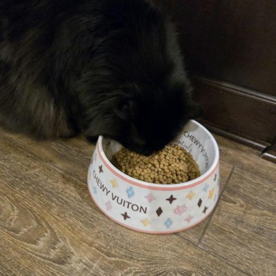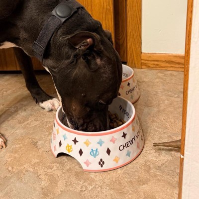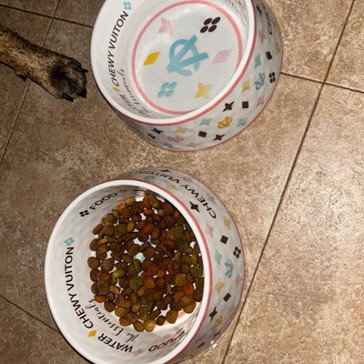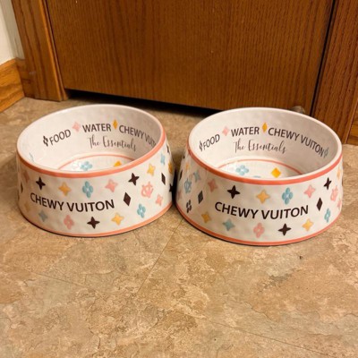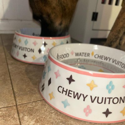 Beautiful and sturdy Chewy Vuiton dog bowls