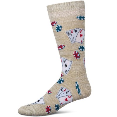 Fun and unique designed crew socks for men featuring all aces, plus a scattering of poker chips