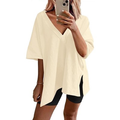 Women's 2 Pieces Set Summer Outfits Sleeveless Crew Neck Side Slit Top Loungewear and Elastic Waist Shorts Lounge Pajama Apricot L