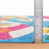 This rug is bright and easy to live with. It clears entry doors and sits nicely on the floor right out of the wrapping. I think I am going to like the washable rugs for every room in the house.