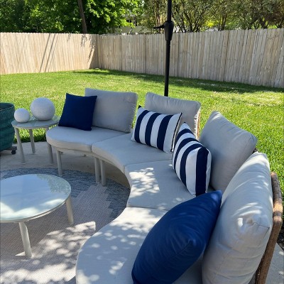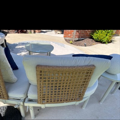 Great for the price, while there are a few cons, the overall look and price deserve 5 stars. Pro’s: looks great, can arrange in different ways, modern look, seating is deep, easy assembly, sturdy, great price. Con’s back is low, cushions come vacuum packed, so best to wait 48 hrs for them to fully fluff, the feet on legs out of one box were bright white and the ones in second box matched legs. Cushions could be a little more comfortable but they aren’t bad. Overall I really like it, I needed a curved couch for my curved patio and this looks great! I do recommend, 4 people can sit comfortably, it’s not bulky and for the price, if the Texas sun ruins it in a couple summers I’m ok with that. Only thing that would make it better is replacement cushions.