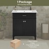 Introducing our exquisite bathroom vanity, designed for effortless maintenance and modern elegance. The smooth ceramic basin not only adds a stylish touch but is also incredibly easy to clean, ensuring your bathroom remains pristine. With built-in overflow protection, you can enjoy peace of mind knowing that spills are contained. Crafted from a solid wood frame and high-quality MDF, this robust vanity promises long-lasting durability. It features versatile storage with an adjustable shelf under the sink, perfect for organizing your toiletries. The sleek, waterproof finish enhances its modern design, while whisper-quiet soft-close doors and luxurious silver metal handles elevate your daily routine to a new level of sophistication. Transform your bathroom with this perfect blend of functionality and style!