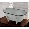 Add a whimsical touch to any space in your home with this Jumbo Light Gray Bathtub Decorative Sculpture. This piece is made from solid metal and is colored to a light gray finish. The claw foot bathtub shape has a black colored rim and four feet underneath which add a nice depth to the overall look. You can use this piece as decor around your home or you can line in with plastic and use it as a fun planter outdoors or indoors. 5" H x 12" W x 6.5" D