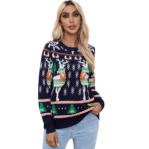 Ugly Christmas Sweater for Women Crew Neck Knitted Pullover Reindeer Snowflakes Sweaters for Xmas Holiday - 1 of 4
