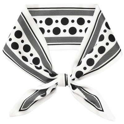 INSPIRE CHIC Women's Polka Dots Skinny Long Satin Silky Ribbon Neck Scarves 1Pc Black White 85x9cm/33.5x3.5"(LxW)