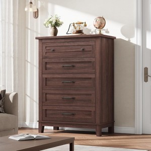 5 Dresser for Bedroom, 41" Tall Dresser, Vertical Drawer Dresser with Storage Freestanding, Wooden Closet Dresser Storage Chest for Bedroom, Walnut