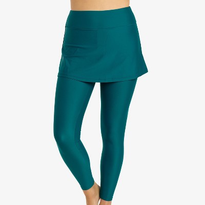 Calypsa Women's High Waisted Chlorine Resistant Capri Swim Leggings - X Large