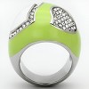 Slickblue Women’s Polished Stainless Steel Ring with Heart-Shaped Clear Crystal, Pave Design, Size 9