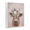 Stupell Industries Highland Cattle Pink Flower Crown Framed Giclee Art, White, 16" x 20"