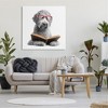 Artwork Relates To: Reading, Book, Animal, Mammal, Pet, Glasses, Dog, Pet