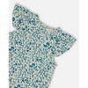 Deux par Deux Girl Printed Organic Cotton Romper with Frills Small Turquoise Flowers - 1 of 3
