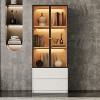 ATJafurn 23.6" Lighted Glass Display Cabinet, Modern Wooden Dining Storage China Shelf Hutch with 2 Drawers for Kitchen Living Room and Study White