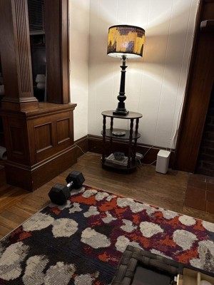 I like this much better in person. Colors are beautiful and rich, and design is unique and works well with my eclectic aesthetic. I originally got the smaller size for my bathroom which needed some color and texture, but after seeing how good the quality and design was in person I ordered the larger one for under my dining table. I have made many purchases on rugs.com this one is hands down my favorite.