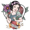 Heigh-ho your way into style and make every day a whistle with this new juniors' t-shirt! Featuring a tattoo-inspired graphic of Snow White posing cutely alongside flowers, along with a big heart, and apple, and the iconic statement: "Fairest of Them All" across the front.