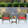 BestMassage 3-Piece Outdoor Patio Furniture Set Rattan Wicker Conversation Set, Red