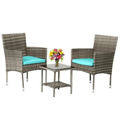 What a joke and waste of my time. I bought this for my daughter for her bday and I refuse to even open the box it came in. For a 3 piece rattan wicker set, the box is so small it must be for children. I shouldn't have to look at measurements when buying a patio set!!!! Target should be embarrassed to entertain sellers like this. I will be returning this. Beyond disappointed!!!!!