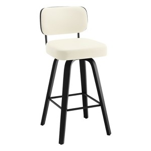 Bekrvio 26" Counter Height Swivel Bar Stools Set of 1,Mid Century Modern PU Leather Upholstered Barstools with Back & Black Wood Frame,White