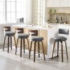 Bekrvio 29" Swivel Bar Stools Set of 4,Mid Century Modern Faux Leather Bar Chairs with Wood Legs and Curved Back for Kitchen Island,Gray