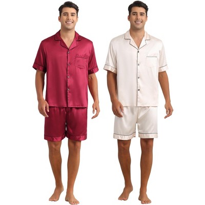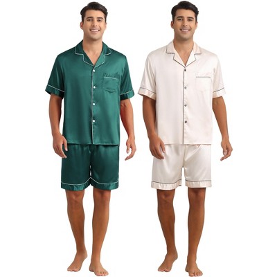 INSPIRE CHIC Men's 2 Pack Satin Pajamas Set Classic Short Sleeve Loungewear 1 Champagne 1 Green Small