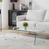 Bekrvio 47.2'' Tempered Glass Coffee Table, V-Shape One Piece Large Glass Coffee Table with 4 Metal Leg Mats