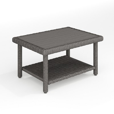 Martha Stewart Bedford Indoor-Outdoor Patio Coffee Table with Lower Storage Shelf and Engineered Wood Top in Brown Rattan Wicker
