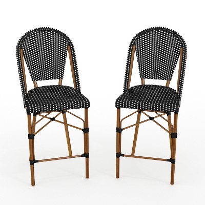 Martha Stewart 2PK All-Weather Stackable Patio Bistro Counter Stools - BLK/WHT with NAT Frames