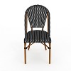 Martha Stewart Lily Pond Indoor-Outdoor Stackable Bistro Chair with Natural Woodgrain Aluminum Finish Frame and Black/White Woven Rattan Back and Seat
