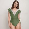 Refined Feminine Design: This one piece offers classic lines with elegant details, ideal for elevated summer style. Keywords: Anna-Kaci Women's One Piece Swimsuit, Crochet Trim Swimsuit, Flutter Sleeve Bathing Suit, V-Neck Swimwear, Ruched Waist Swimsuit, Elegant Black Swimsuit.