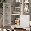 White Color Design: Modern style and decorative 2 doors with glass inside make it fascinating in any room space. Handleless design feelings of exquisite. Combining elegance, modern feeling. Unique appearance and classic style make it matched in kinds of living space styles. This storage cabinet being practical to meet various storage needs.