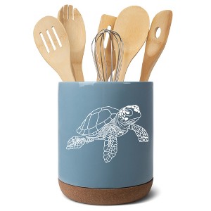 ELEGANT SEA TURTLE DESIGN: Bring a touch of the ocean into your kitchen with this beautifully designed ceramic utensil holder featuring a graceful sea turtle
