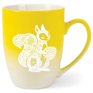 Elanze Designs 12 Ounce Vibrant Two Toned Ombre Ceramic Tea Coffee Cup Mug Yellow White Floral Squirrel