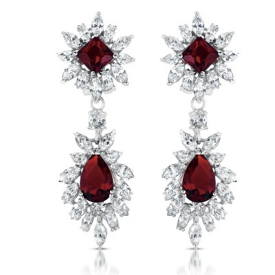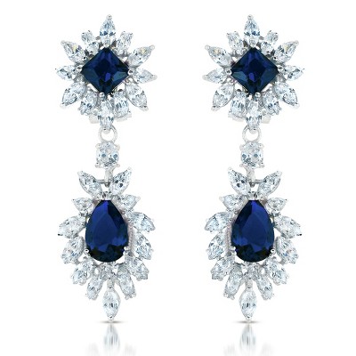 Guili Sapphire Glow GV Sterling Silver with Colored Cubic Zirconia Double Halo Cluster Dangle Earrings for an Elegant and Royal Statement
