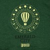 • Dual-Sided Design: A small gold chest print showcases the Wizard’s hot air balloon with the moon phases and “Emerald City” and “Wicked” beneath it, while the back features a large, detailed version surrounded by moon phases.