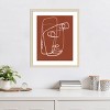 The artwork features a minimalist line drawing of an abstract face using simple white lines on a warm, earthy background. The geometric forms interlock to create a sense of depth and complexity. The style is reminiscent of cubism, capturing human features in an unconventional way. This framed art print was created by Little Dean and printed by Amanti Art in Madison WI. The print is giclee printed using fade-resistant inks for picture-perfect detail and incredible depth of color and finished with a 100% real wood frame. Individually made using traditional custom framing techniques, it has the quality you would expect from your local frame shop.