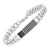 Men's two tone black ip and stainless steel american flag id bracelet. Thoughtfully designed for everyday wear and special moments, with a balanced profile that pairs easily with casual layers or evening looks. Each piece is produced with attention to proportion and comfort, emphasizing clean lines and subtle texture so it feels considered without being fussy. Wear it solo as a quiet statement or stack it with favorites to build a look that reflects your mood. Great as a gift or a personal update to your rotation; store in a soft pouch when not in use to help preserve the finish.